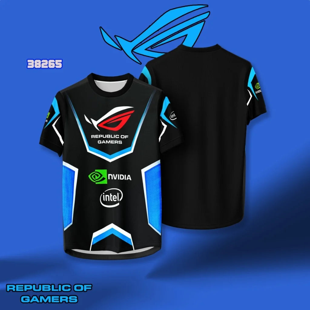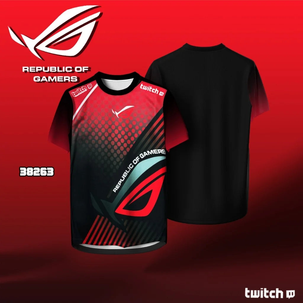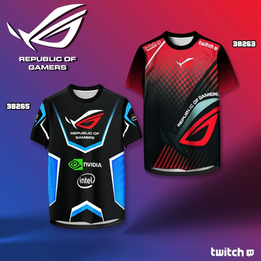 Republic of Gamers Esports Jerseys - Two Styles Black Blue Accents & Red - Black Gradient Ideal for Gaming Enthusiasts