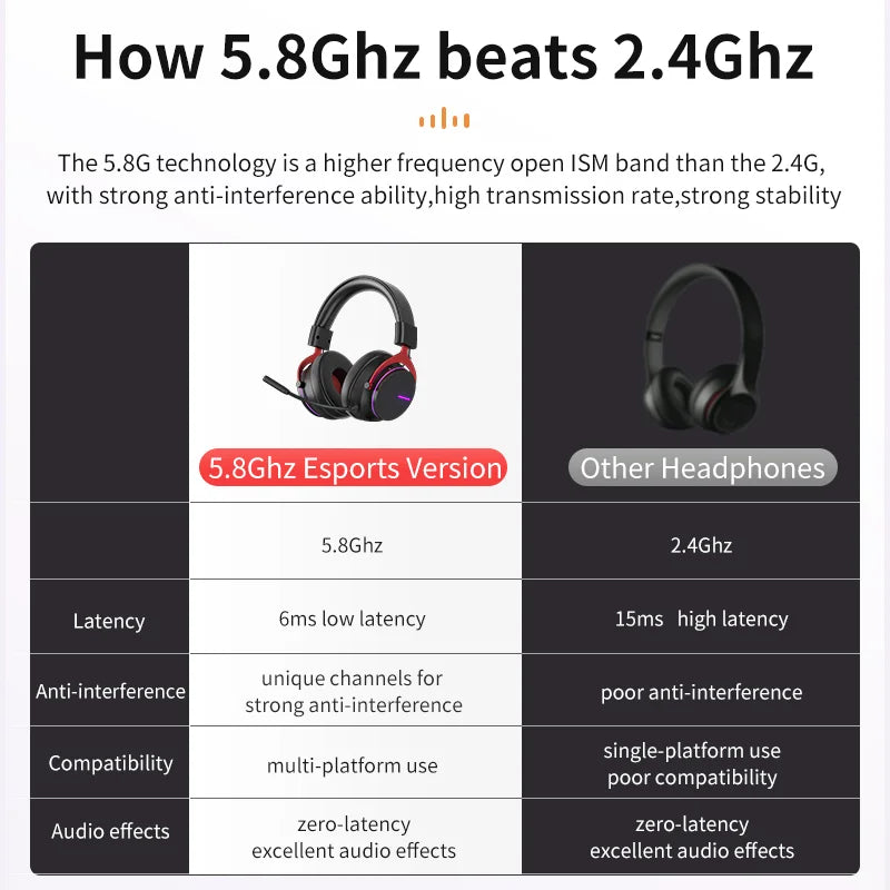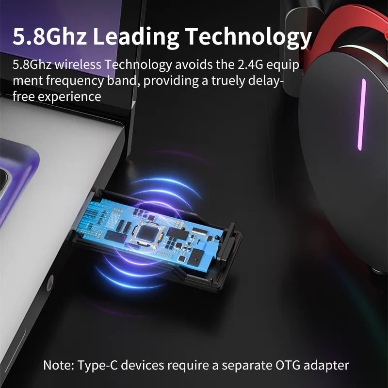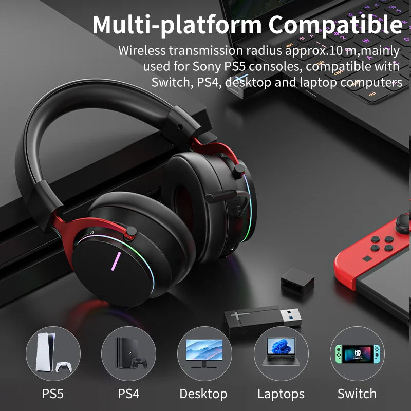 5.8G Wireless Dynamic RGB Gaming Headset 7.1 Surround Sound HD Mic For Switch/PS4/PS5 Bass Stereo Gamer Headphone For PC/Laptop